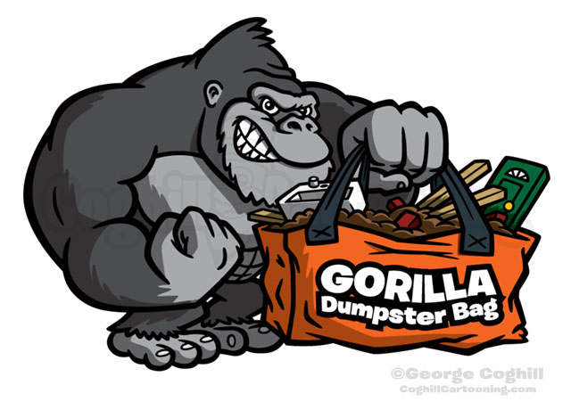 Gorilla Dumpster Bags Cartoon Logo Illustration Coghill
