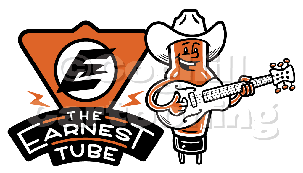 Earnest Tube retro vintage guitar cartoon logo.